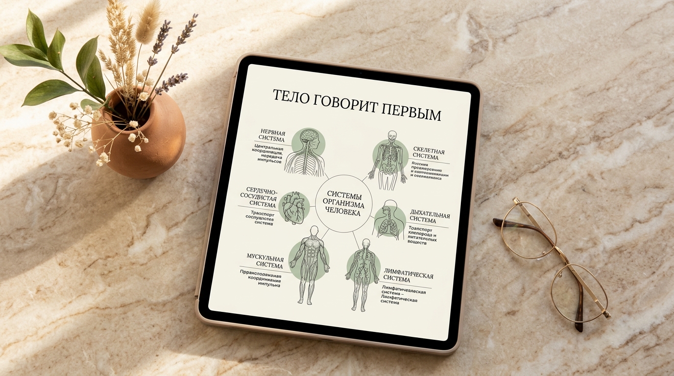 Но вот что на самом деле происходит: каждый из этих симптомов это конкретный сигнал конкретной системы тела. И он говорит не «потерпи». Он говорит: «Действуй. Сейчас. Пока не стало поздно.»
