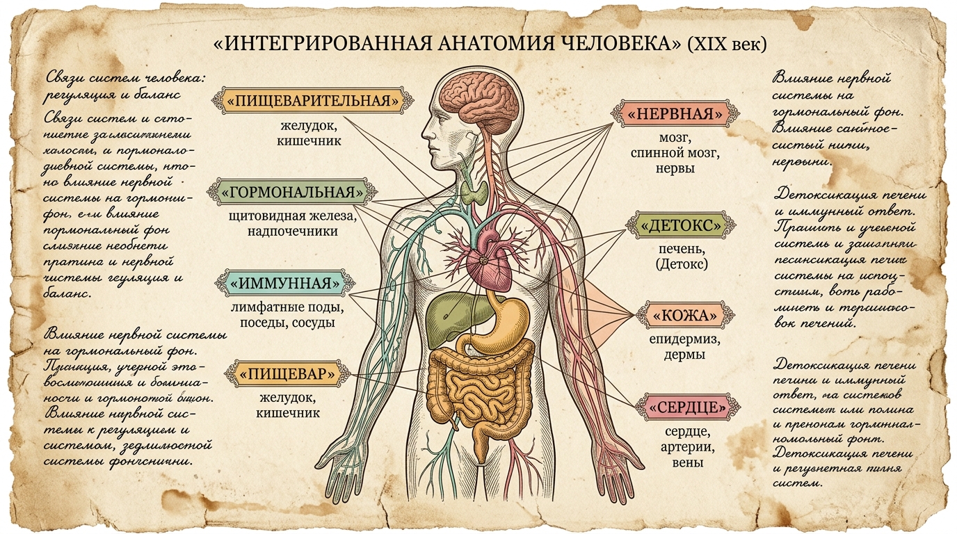 Тело не набор органов. Это единая сеть из 7 систем. Сбой в одной запускает каскад во всех остальных. Книга раскладывает эту сеть так, что вы видите связи, которые не увидите больше нигде.