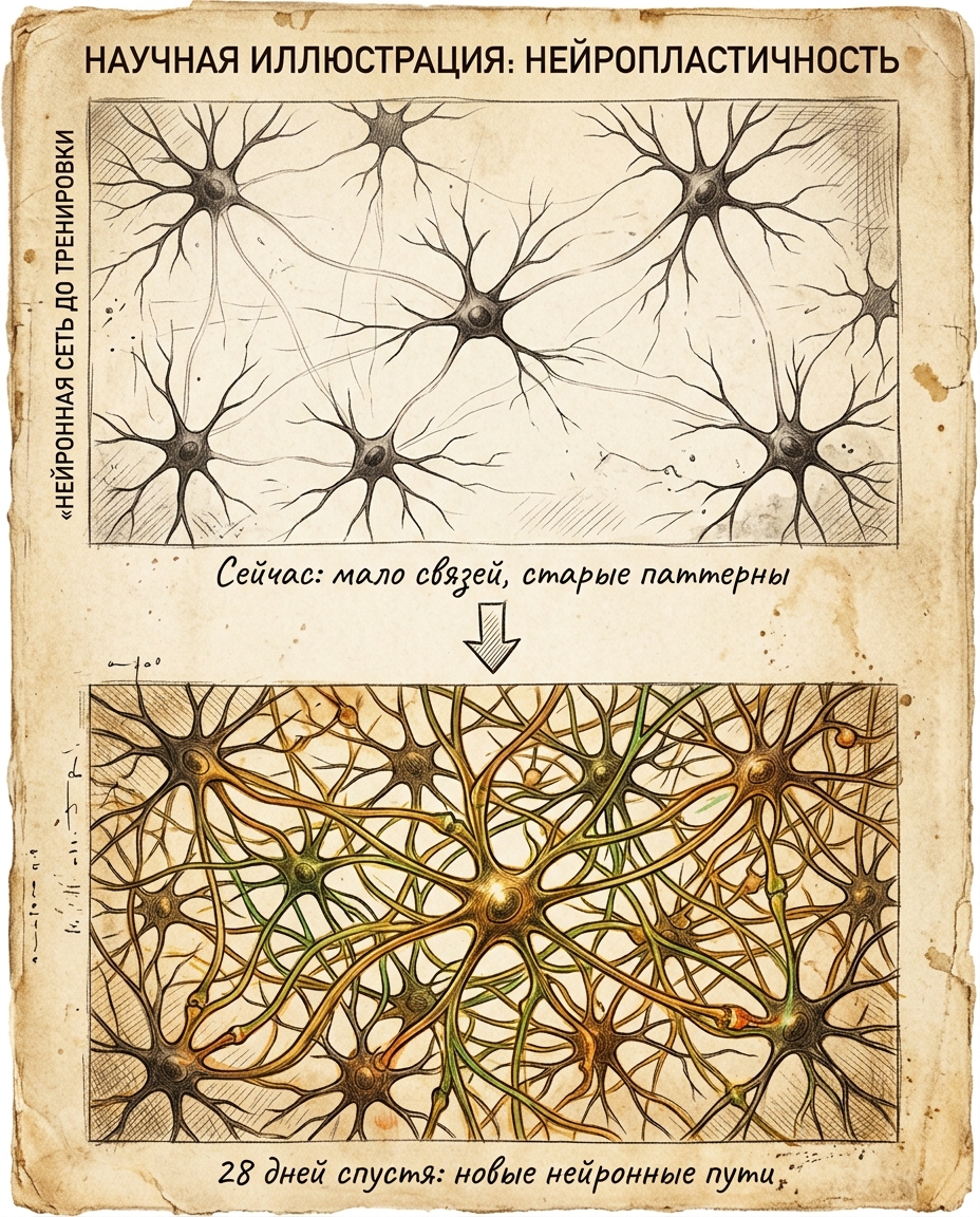 Причина не в слабой воле. Не в том, что «слишком много думаете». Причина в нейронных паттернах, по которым работает мозг. И они перестраиваются. За 28 дней.